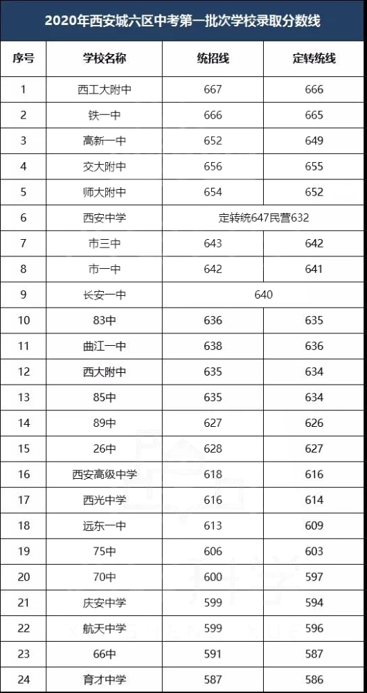 2020西安城六区第一批次学校录取分数线